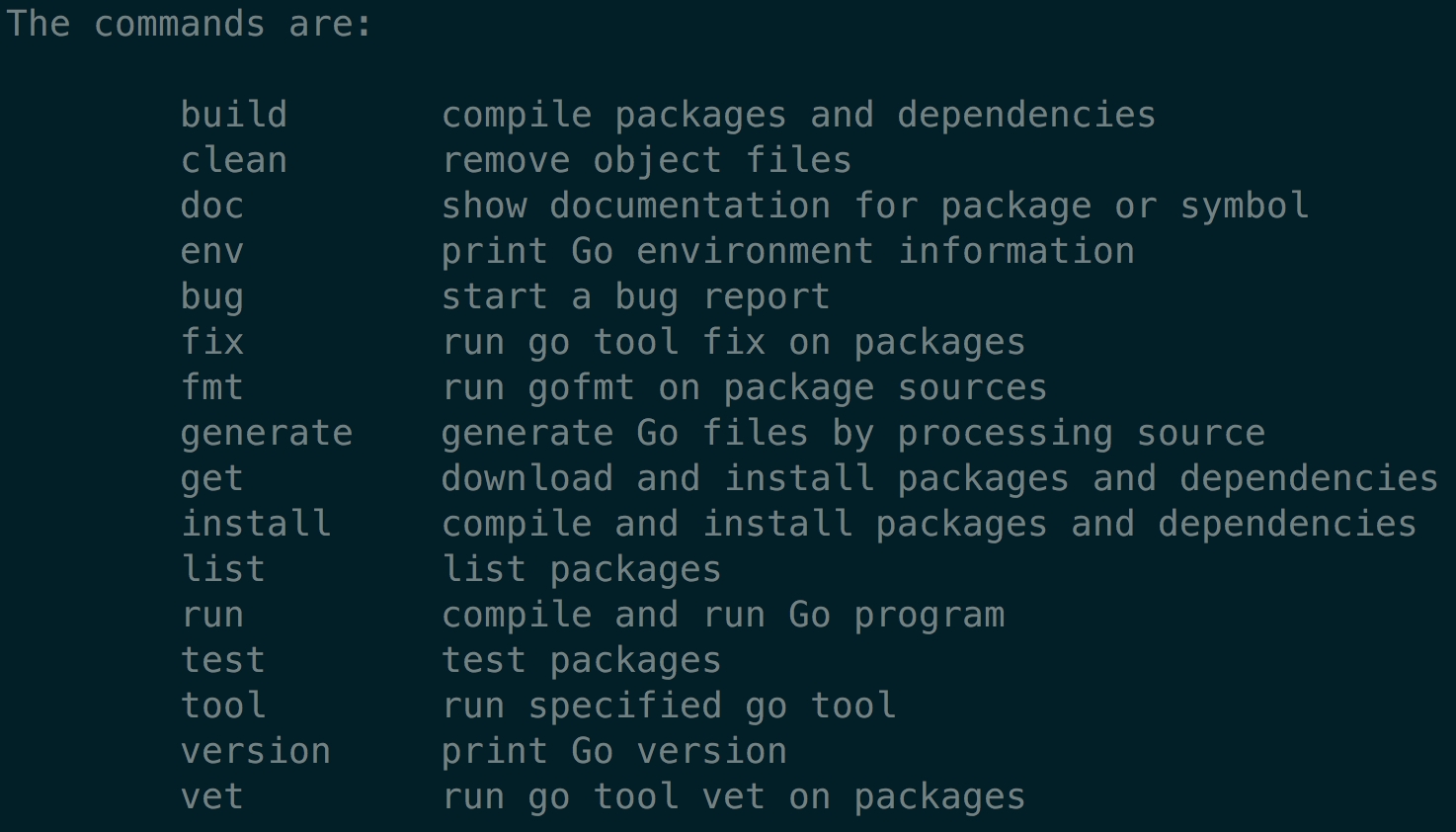 至于 build flags 参数,build, clean, get, install, list, run, test