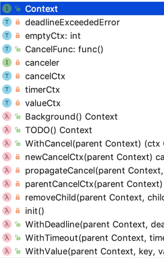 上面这张表展示了 context 的所有函数、接口、结构体,可以纵览全局,可以在读完文章后,再回头细看。