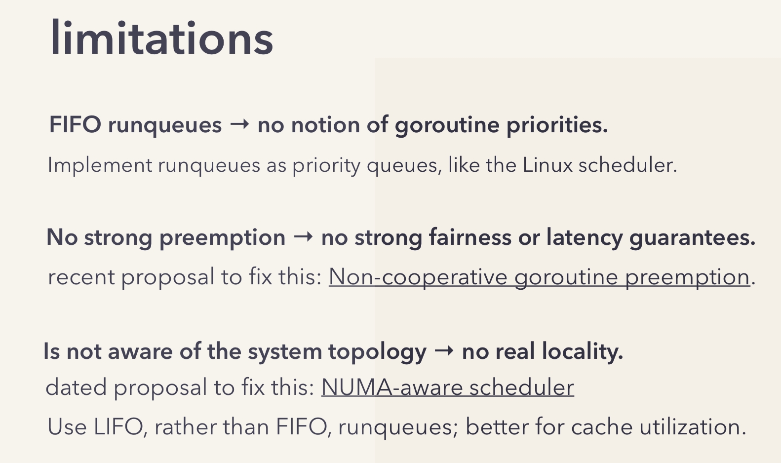 但是由于在 Go 语言里,goroutine 调度的事情是由 Go runtime 来做,并非由用户控制,所以我们依然可以将 Go scheduler 看成是抢占式调度,因为用户无法预测调度器下一步的动作是什么。